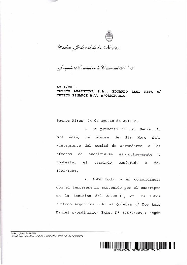 Camara Rechaza Apelación de Ceteco Argentina SA |
