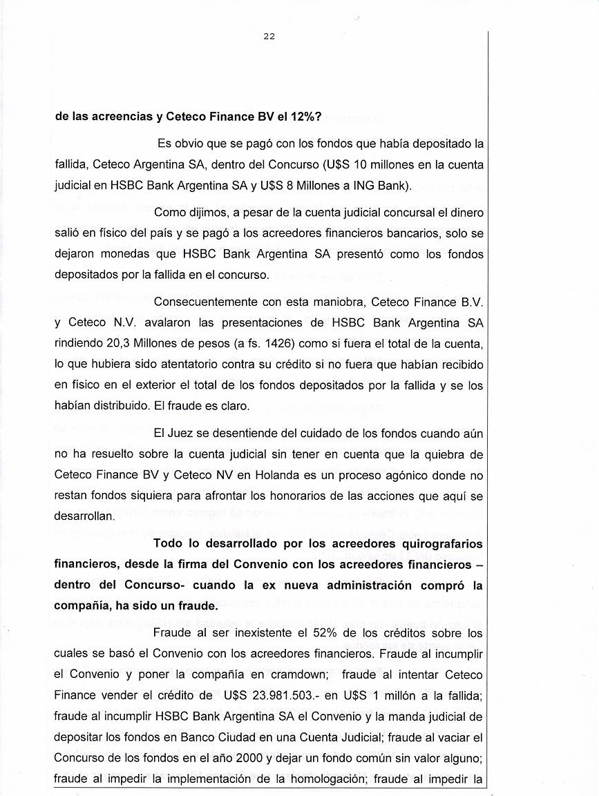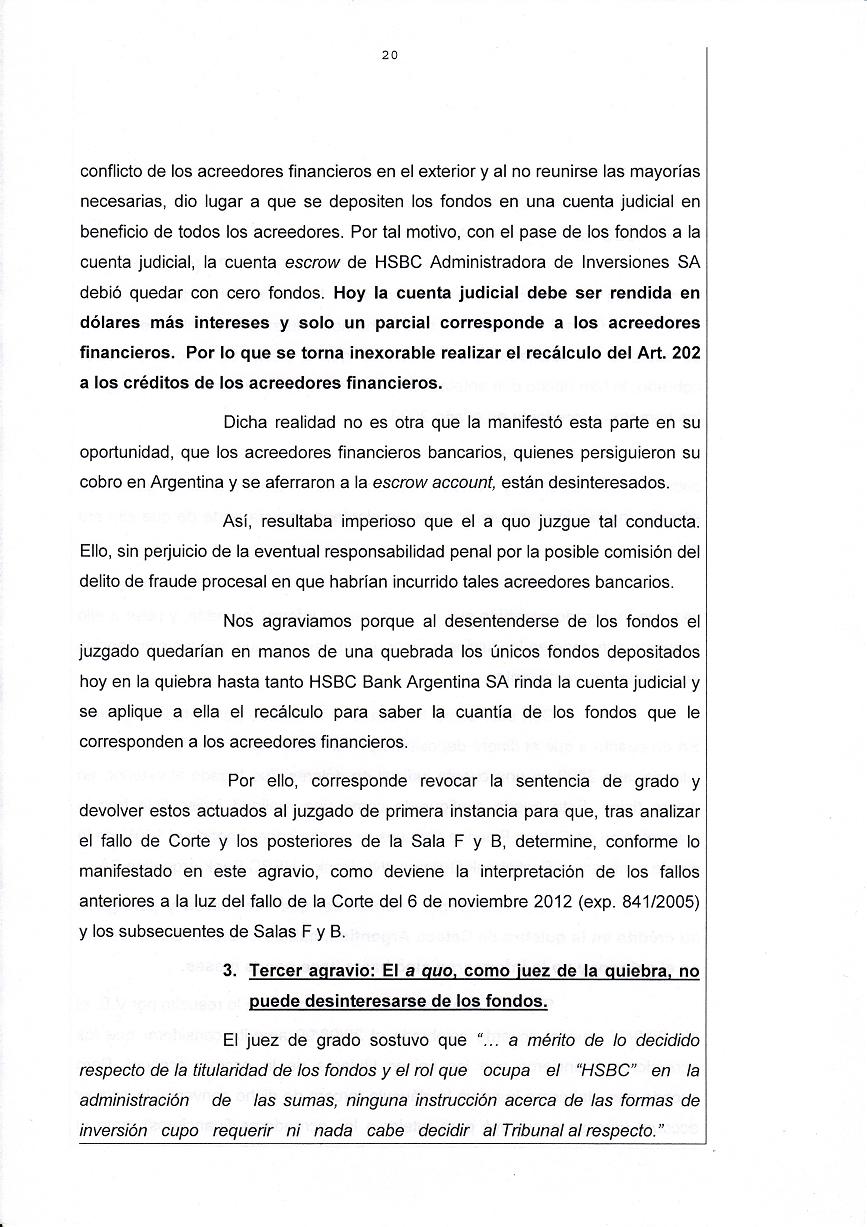 Los Acreedores Financieros no solo asaltaron la cuenta judicial y licuaron los fondos sino además pretenden robarle a la masa los únicos insignificantes fondos para afrontar un Dolo de U$S 23.9 Mill. |