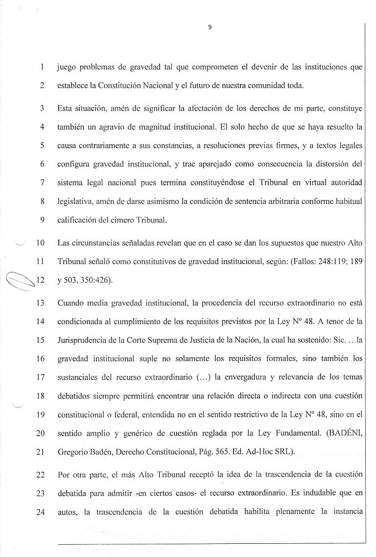 Luego del escandaloso fallo de Cámara donde sin razón falla ajeno a las constancias del expediente, rechaza el Extraordinario sin razón valida alguna |