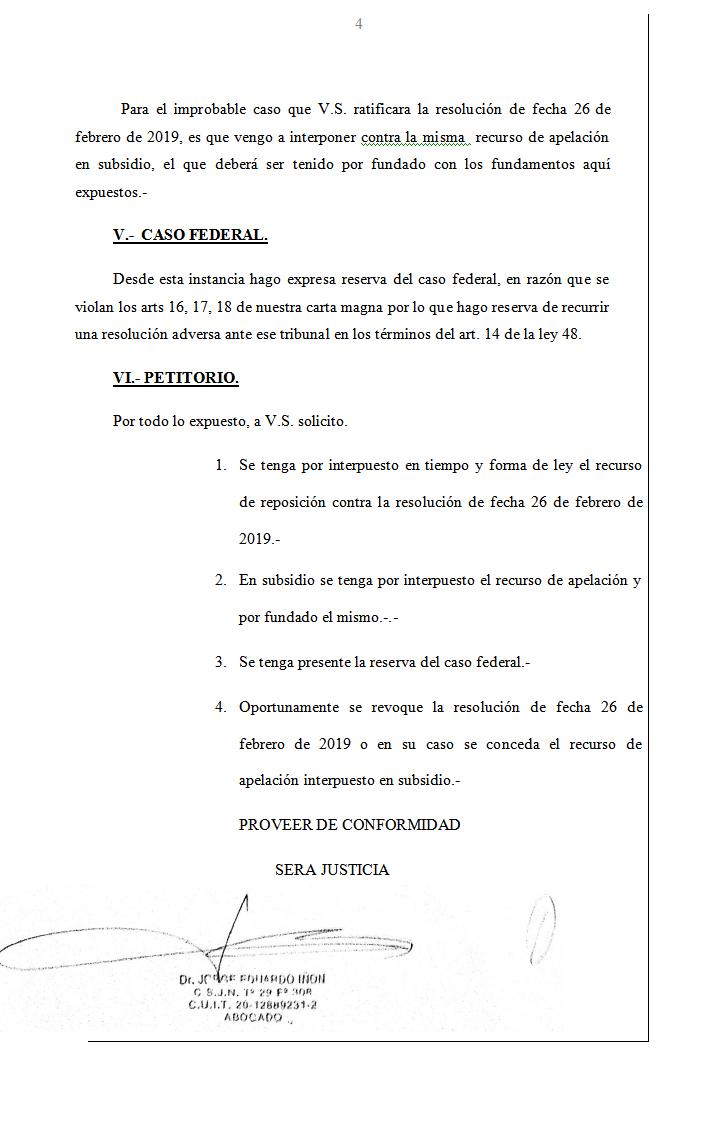 Ex Administradores con patrocinio de Dr Gregorio Badeni y Carlos Laplacette exigen rechazo in limine |
